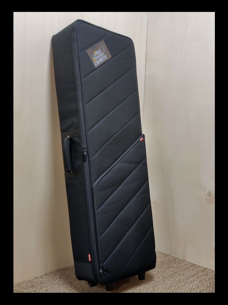 - L'ensemble est conditionné dans une valise 20 x 45 x 140 cm, avec roulettes et des mousses sur mesures pour le matériel informatique. (pour la version valise)